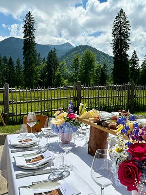 Gäste kleiner Hochzeiten, von Geb urtstagen und Taufen können mit Blick in die Berge entspannt genießen.