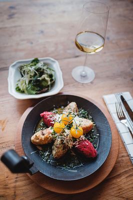 Die Karte wird trotzdem alle vier bis sechs Wochen saisonal adaptiert. Zusätzlich ergänzen zwei bis vier Tagesgerichte das ohnehin breite Angebot: Trüffelpizza etwa oder verschiedene gesunde Bowls, Dry Aged Filet sowie Carpaccio reihen sich ungeniert zwischen Bayrischen Wurstsalat, Weißwürste, Allgäuer Käsespätzle, Obazden vom Tegernseer Rauchfisch oder Rauchsaiblingsfilet. Martin Frühauf ist es schließlich wichtig, alle Menschen kulinarisch zu verwöhnen.