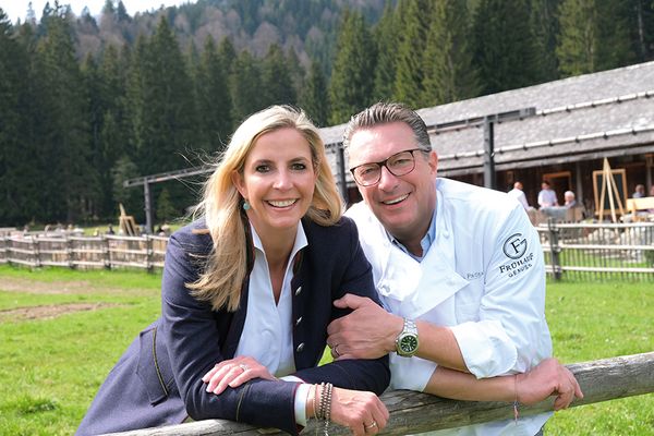 Auch wenn ich über 40 Jahre gastronomische Erfahrung habe – es ist schon eine besondere Herausforderung, eine Alm bewirtschaften zu dürfen“, schwärmt Martin Frühauf über das jüngste Projekt seines Gastro-Imperiums. Dabei hat der leidenschaftliche Gastgeber schon alles gesehen. Er war Wiesenwirt im legendären Hippodrom, bekochte den deutschen Alt-Bundeskanzler Helmut Kohl und hatte zwischen Business- und Fine-Dining-Restaurants schon sämtliche Lokalarten im Portfolio. Seit 2021 bewirtet er gemeinsam mit seiner Frau nun zusätzlich die Saurüsselalm. Sie liegt auf 927 Metern Seehöhe oberhalb von Bad Wiessee, einer Gemeinde am Westufer des noblen Tegernsees: „Meine Frau und ich haben den Anspruch, hier so viele Gästeschichten wie möglich kulinarisch anzusprechen. Da muss man schon kreativ werden, wenn man hier oben alle damit verbundenen Aufgaben bewältigen möchte“, meint er.