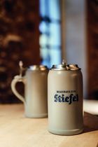 Was aus den Zapfhähnen in die Steinkrüge rinnt, ist speziell für den Stiefel gebraut und sehr bekömmlich.