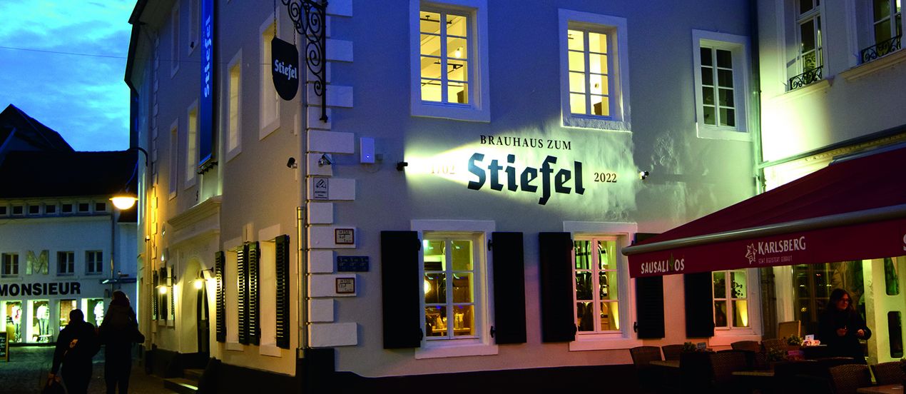 Als die Gastroinstitution 2020 pandemiebedingt in Schieflage geriet, sprang die place2b-Gruppe gemeinsam mit einem Investor ein und ersteigerte das historische Gebäude von einem Nachfahren des Brauereigründers Johann Daniel Bruch. Letzterer hatte sich im 18. Jahrhundert in die Tochter eines Schusters verliebt, der neben seiner Brauerei gerade ein Gasthaus eröffnet hatte, das er aus naheliegenden Gründen „Zum Stiefel“ nannte. Der Rest ist eine lange (Liebes)-Geschichte. Ganze neun Generationen bestand die Brau- und Gasthaus-Tradition in den alten Gemäuern.