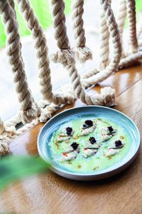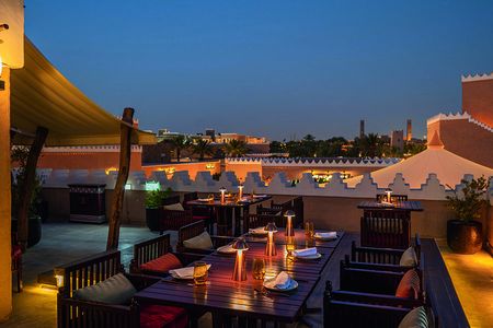 Mit dem Maiz gleich neben dem ehemaligen saudischen Königspalast im historischen Bezirk At Turaif zeigt die Al Khozama Group, was sie sich unter saudi-arabischem Fine-Dining vorstellt. Serviert werden Nationalgerichte wie Lamm Khabsa, für das Lammrippen zusammen mit Khabsa-Gewürz und Reis gegart werden. Dazu gießt der perfekte Service Lamm-Jus mit Cashew-Kernen an und schiebt gepickelte Datteln hinterher. Oder man wählt schlatzigen Saleeg mit Huhn. Dafür wird Reis in Hühnerbrühe und Milch gegart, bis er in etwa Risotto-Konsistenz annimmt. Die gerösteten Hühnerstückchen liegen obenauf und dazu gibt es Duggus, eine Sauce aus Tomaten, Koriander und Chili sowie geräucherten Ghee. Die meist ausländischen Gäste lehnen sich danach in edle Sadu-Kissen und bewundern die lehmbraune Najd-Architektur rundherum.