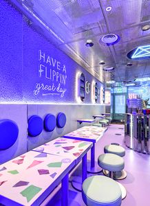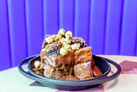 Der Mittlere Osten ist einer der größten Schokolade-Abnehmer weltweit. Dass ein Café aus London, das sich auf French Toast spezialisiert, Ableger in Doha und Riad gründet, ist also gar nicht so abwegig. Auf der Karte stehen deshalb der „Nutella & Popcorn“ oder „The Choco-Holic“. Dafür wird warmes Brioche in Zimtzucker getaucht und dann mit Softeis, Nutella-Sauce und Waffelcrumble getoppt. Außerdem gibt es fruchtige Varianten und welche mit Tiramisu, Ahornsirup, Pistazien oder Lotus Biscoff. Und weil das alles sooo süß ist, passt die zeitgeistige Einrichtung in Fliedertönen perfekt. Wer es herzhafter bevorzugt, bekommt natürlich einen ausgiebigen Brunch und bei der riesigen Kaffeeauswahl von Flat White bis Aeropress darf der heimische Ghawa-Kaffee nicht fehlen.