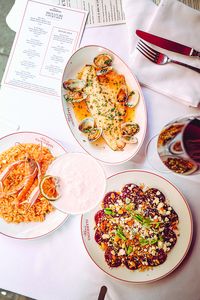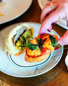 Die italienische Aperitivo-Kultur zu pflegen und zu feiern, das hat sich auch das Team der Bar Sprezzatura im Zentrum von San Franciscos Finanzviertel vorgenommen. Dazu ließ man Interior-Designer einen Raum schaffen, der an eine venezianische Trattoria erinnert, mit Hochglanzholzvertäfelungen, einer Decke aus goldenen Mosaikfliesen, in Blau gehaltenen Möbeln, einer weitläufigen Bar und viel Tageslicht. „Seit unserer Eröffnung im Spätsommer 2022 haben wir uns stark weiterentwickelt“, erzählt Executive Chef Joseph Offner. „Ursprünglich wollten wir unsere Cicchetti so wie in einer venezianischen Bacaro anbieten. Aber alle liebten diesen Raum und wollten hier mehr Zeit verbringen, darum haben wir entschieden, auch handgemachte Pasta und andere Hauptgerichte anzubieten, um ein umfassendes Essenserlebnis zu schaffen.“