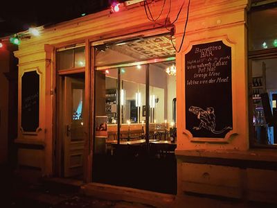 Zu den beliebtesten zählen die Cicchetti mit Vitello Tonnato, aber auch die vegetarische Artischockencreme wird gerne genommen, ebenso die Varianten mit Mozzarella und Pomodorini sowie mit Gorgonzola und Granatapfelkernen. Klassiker wie Mortadella und Salami stehen natürlich auch zur Auswahl. Weniger bekannt, aber ebenso raffiniert ist Crema di Pesche con Dragoncello, also Pfirsichcreme mit Estragon. Zu den Cicchetti serviert David Regehr nicht nur die klassischen Aperitivi, sondern auch eine handverlesene Auswahl an sprudelndem Pet Nat und Naturweinen. Und immer donnerstags werden im Blauen Zimmer der Barettino-Bar die Tanzbeine geschwungen, meist zu Salsa-, Walzer- und Swingmusik, hin und wieder auch zu DJ-Klängen.