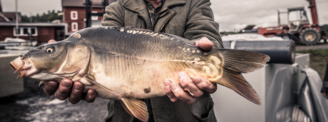 So viel Aufwand macht sich in der Fleischqualität bemerkbar. „Wenn wir die drei Sommer gereiften Karpfen nach einem Jahr im großen Teich mit etwa zwei bis drei Kilo Gewicht abfischen, ist das Fleisch schön kompakt und saftig“, freut sich Reimoser, während er einen besonders schönen Spiegelkarpfen mit schimmernden Schuppen und glänzenden Augen in die Höhe wuchtet. Denn als Geschäftsführer des steirischen Teichwirteverbands nimmt er die Qualitätskontrollen bei allen Mitgliedsbetrieben nicht auf die leichte Schulter. Neben dem schonenden Abfischen spielen für die einzigartige Produktqualität der regionalen steirischen Spezialität noch eine Reihe weiterer Faktoren eine wichtige Rolle. Etwa, dass die Fische aus nur einer Auf-zuchtstation vor Ort stammen, weil dadurch das Risiko des Schädlingsbefalls erheblich minimiert wird, oder dass die Teichwirte beim Besatz streng darauf achten, dass nicht zu viele Fische im Wasser schwimmen: „Wenn die Karpfen nach zwei Sommern in kleineren Teichen schließlich in den großen Teich eingesetzt werden, sollte jedem von ihnen eine Teichfläche von mindestens zehn Quadratmetern zur Verfügung stehen. So findet jeder Karpfen genügend Planktonkrebse, Würmer und Insektenlarven, mit denen er seinen Eiweißbedarf natürlich decken kann.