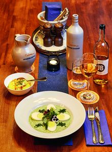 Sehr viel! Vor allem geschmacklich. Die deutsche Geschmackswelt bewegt sich für mich zwischen rauchig, säuerlich, fettig und salzig. Deswegen legen wir beispielsweise viel in Salz und Essig ein und verwenden keine Zitrusfrüchte. Wir übersetzen diese klassischen Aromen in die heutige Zeit und unseren eigenen Küchenstil, wenn man so will.