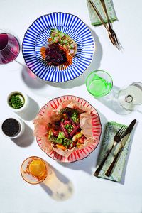 Wer im Burbank in der Gutleutstraße einen Tisch ergattert, wähnt sich an der Westcoast irgendwo zwischen San Francisco und L. A. – vor allem auf der wunderschönen Terrasse, die sie hier selbstredend „Patio“ nennen. Wie bei aktuell vielen zeitgeistigen Konzepten hat im Burbank kulinarisch der Berliner The Duc Ngo die Finger mit im Spiel. Für die Gekko Group entwickelte er ein Konzept, das dem schon etwas abgelutschten Pan-Asia-Trend neues Leben einhaucht. Dafür fügt er seiner Geschmacksgleichung zusätzlich amerikanische und mexikanische Anklänge hinzu. Also gibt es ein sauberes Baja California Steak vom Blue Fin Tuna mit Salsa Verde genauso wie Signature California Rolls, Ceviche, Korean Fried Chicken oder einen Taco de Pollo. Hoffentlich behalten die Gäste bei so viel Länderküchen-Vielfalt den Überblick!