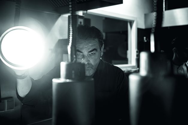 Ich lege das Ausgangsprodukt in 96-prozentigen Alkohol ein, darin bleibt es dann so lange wie nötig. Danach siebe ich es so aus, dass nur noch die Flüssigkeit übrigbleibt. Diese destilliere ich dann im Glasbehälter des Rotationsverdampfers, der Alkohol löst sich und steigt in den Zylinder auf. Durch die Abkühlung wird er wieder flüssig und tropft als Grundprodukt in einen kleineren Behälter. Da die gewonnene Flüssigkeit noch zu intensiv ist, löse ich sie in Wasser auf, bis sie einen Alkoholgehalt von 20 Prozent hat und fülle sie in einen Parfumzerstäuber ab.