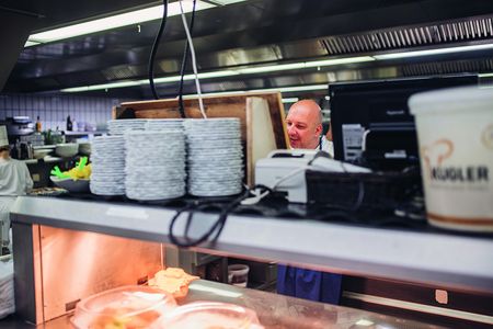 Als Chef der riesigen Küche dirigiert Michael Schubaur sein Team mit Empathie und vollem Einsatz