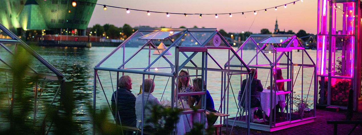 Wie sich verstärkte Hygienemaßnahmen mit Wetterschutz verbinden lassen hat das Mediamatic Eten in Amsterdam letztes Jahr auf kreative Weise gezeigt: An der Mole vor dem Gebäude wurden fünf Mini-Glashäuser mit Platz für zwei bis drei Personen aufgestellt und pro Abend mit zwei Timeslots bespielt. Im südhessischen Hotel Restaurant Poststuben wurde die Idee gleich kopiert: Die Eigentümer schafften sich 6 m² große, gläserne Gewächshäuser mit zwei Dachöffnungen und platzsparender Schiebetür an. An kühlen Tagen sorgen Infrarotstrahler für wohlige Wärme, abends Lichterketten für eine heimelige Stimmung. Der Kellner bleibt vor der Türe stehen und reicht die Bestellungen ins Häuschen. Solch radikale Konzepte sind zum Glück nicht mehr nötig. Sich mehr Gedanken, über die bessere Nutzung der Außenflächen zu machen, aber sehr wohl.