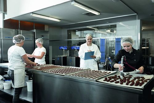 Zusätzlich zu den Teigen werden auch alle Cremen, Fruchtmassen sowie Crumbles im Betrieb selbstgemacht. Selbst das Dressieren der einzelnen Komponenten sowie das dekorative Bestreuen erfolgen per Hand. „Wir verwenden maschinelle Helfer nur dort, wo sie uns unterstützen und die Qualität der Produkte nicht beeinflussen. Wir verstehen uns als Manufaktur, in der jedes Produkt mit Liebe von Hand gemacht wird“, betont Heindl und fügt hinzu: „Wir bieten ein hochwertiges, handwerklich hergestelltes Dessert, das sich deutlich von einem Industrieprodukt abhebt. Der Gastronom kann es guten Gewissens als hausgemacht servieren.“ Als wertvollstes Gut bezeichnet sie daher nicht ihre Maschinen, sondern ihre Mitarbeiter, die sich allesamt für ihre Leidenschaft begeistern. „Wenn man selbst für etwas brennt und sich dafür einsetzt, fällt es leichter, Mitarbeiter für sein Tun zu gewinnen“, ist die oberösterreichische Unternehmerin, die in ihrer Konditorei auf eine Frauenquote von fast 100 Prozent kommt, überzeugt.