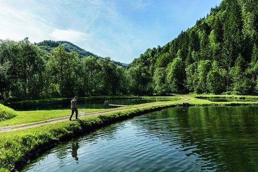 Der letztgenannte Aspekt passt außerdem perfekt zum Eisvogel-Credo naturnaher Fischzucht. In Molln ist man diesbezüglich schon lange ein Vorreiter. Der Produktionsstandort liegt im Naturschutzgebiet Kalkalpen, wo die Eisvogel-Fischteiche im Einklang mit der Natur angelegt wurden. Das bedeutet, dass beispielsweise Saiblinge im kühlen, sauerstoffreichen und schnellfließenden Wasser aus einem Gebirgsfluss großwerden. Zusätzlich ist die Besatzdichte wesentlich geringer als bei der globalen Konkurrenz, was insgesamt zu höherer Fleischfestigkeit und besserem Geschmack führt. Damit diese Qualität auch beim Kunden ankommt, hat man außerdem die klassische „Styropor mit Eis“-Verpackung verbannt. Bei Eisvogel liegen die Fische in verschweißten Kunststofftassen, die mit Schutzgas befüllt sind. So kommen sie nicht mehr mit Schmelzwasser in Berührung. Wie man schon länger weiß, ist das ein wesentlicher Faktor, damit Textur und Geschmack erhalten bleiben. Zusätzlich sind sie aufgrund des niedrigeren Sauerstoffgehalts in der Verpackung länger haltbar, was für Gastronomen mehr Flexibilität bedeutet.