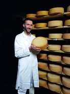 Käsemeister überprüfen laufend, dass die Laibe während ihrem Reifeprozess regelmäßig gewaschen und gewendet werden.