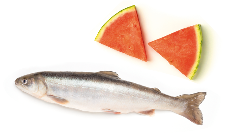 Die Melone hat bei optimaler Reifung einen hohen Zuckergehalt, ihr Geschmack wird als erfrischend und saftig wahrgenommen. im Gegensatz dazu das feine, milde Aroma vom frischen Seesaibling. Der Zuckergehalt der Melone intensiviert das milde Aroma vom Saibling am Gaumen, die Fruchtsäure ergänzt den leichten, milden Fischgeschmack. Generell dominiert bei dieser Paarung das Fischaroma klar.