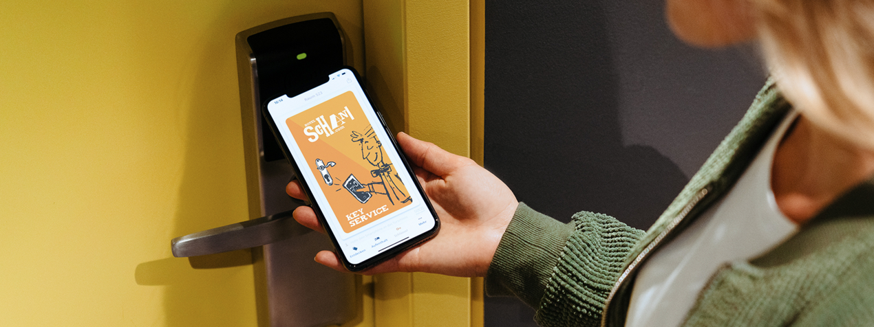 Der Gast erhält automatisch seinen mobilen Zimmerschlüssel aufs Smartphone. Nur die Zimmertüren müssen dafür entsprechen umgerüstet werden. - Online bezahlen
