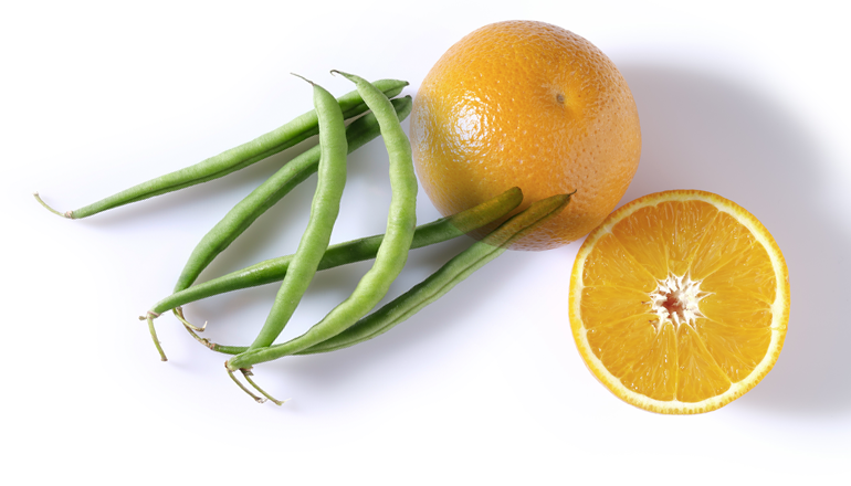 Die Brechbohnen bringen in diese Kombination fein herbe, aber trotzdem milde Aromen ein. Der Geschmack wird allerdings durch fruchtige sowie säurebetonte Zitrusaromen und ätherische Öle der Orange bestimmt, die durch die Aromen der Bohne sogar noch unterstrichen werden. Der Säuregehalt der Zitrusfrucht wirkt sich außerdem positiv auf den Farberhalt der Bohne aus, die ihre grüne Farbe besser behält.