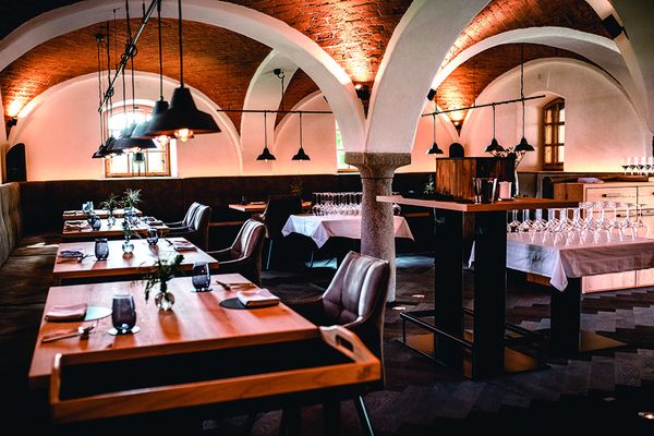 Das alte Gewölbe des ehemaligen Kuhstalls ist der perfekte Rahmen für das edle Haubenlokal-Interieur.