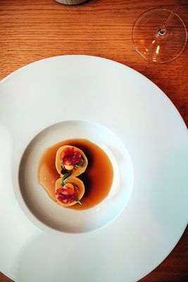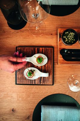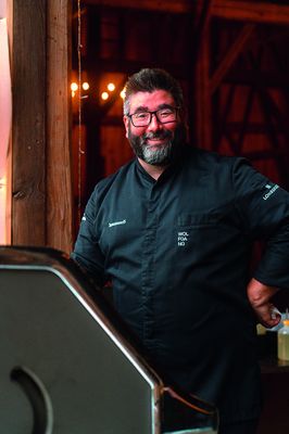 Wer seine Kreationen kosten möchte, kann das in der Zeit von September bis Juni zwischen Donnerstag und Sonntag. Mit Reservierung gibt es dann ein Sechs-Gänge-Menü, mit Weinbegleitung oder hausgemachten antialkoholischen Getränkekreationen. Das Menü wechselt dabei im Sechs- bis Acht-Wochen-Rhythmus. Und in den Sommermonaten heißt es von Sonntag bis Mittwoch: „Drill the Grill“. Auf der idyllischen Innenhof-Terrasse des Vierkanters glühen dann die Kohlen für bis zu 35 Gäste, die aus einer Vitrine ihr bevorzugtes Stück Fleisch oder Fisch auswählen können. Vom zwei Kilo schweren Porterhouse-Steak bis über die 300-Gramm-Forelle mit Salzkruste ist alles dabei, was das Herz begehrt – Vor- und Nachspeise inklusive.