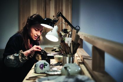 Die Fertigkeiten und das Wissen, die es für solche Langlebigkeit braucht, hat Valenta von gleich mehreren Studienaufenthalten in Japan mitgebracht. An der Tokyo University of the Arts und der Universität Kyoto lernte sie beispielsweise, wie wichtig die richtige Luftfeuchtigkeit für das Trocknen des Lacks ist, der in mehreren Schichten aufgebracht wird, um die Klebestellen zu verbinden. „Urushi braucht hohe Luftfeuchtigkeit, damit er langsam aushärten kann. Ich habe mir sogar einen Schrank eingerichtet, in dem ein spezielles Gerät die Luftfeuchtigkeit bei etwa 75 – 80 % hält.“