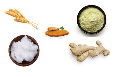 Kleine Mengen Weizengluten sorgen bei der Schnitzelmasse für Bindung und steuern wichtige Aminosäuren bei.