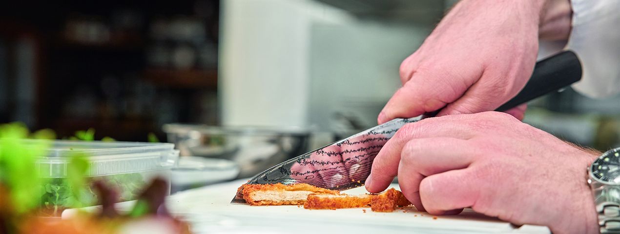 Schön und gut, aber können die Produkte auch im Restaurant-Alltag überzeugen? Martin Kinast hat das Faschierte von endori, das KRÖSWANG gerade neu in sein Sortiment aufgenommen hat, kürzlich zum ersten Mal angeliefert bekommen. „Der erste Eindruck war sehr gut“, meint er. „Die Verpackung ist durchdacht gemacht, leicht zu handhaben und Papier und Plastik lassen sich einfach trennen. Der Geruch des Faschierten ist neutral und auch Konsistenz und Aussehen sind in Ordnung“, schildert er die ersten Eindrücke. „Ich habe auch die Kollegen in der Küche im Rohzustand kosten lassen. Da merkt man natürlich schon einen großen Unterschied zum Fleisch, aber mitgegart in Sauce oder in einer Bolognese würde dem Gast wahrscheinlich nicht auffallen, dass er kein Fleisch isst. Das ist schon beachtlich. Vor allem in Verbindung mit Tomatensauce funktioniert das sehr gut.“ Kinast kann sich deshalb etwa auch vorstellen, aus dem veganen Faschierten Fleischlaberln mit Knödelbrot zu machen. Würzen würde er klassisch mit Rosmarin, Thymian und Knoblauch. „Ich arbeite zusätzlich auch immer gerne mit Sojasauce, dann wird das Geschmackserlebnis noch intensiver.“