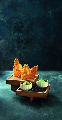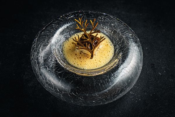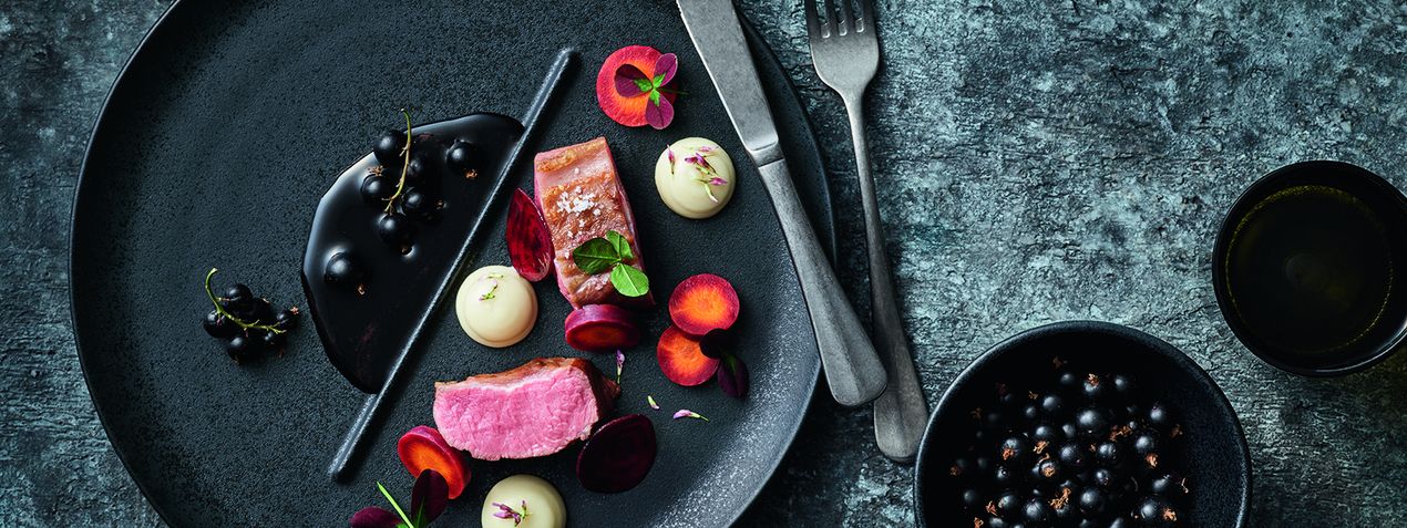 Die breite Fahne unterstreicht hier die Wertigkeit des Gerichts. Darüber hinaus schafft sie Platz, um beispielsweise ein Grissini oder einen Spieß zu platzieren.