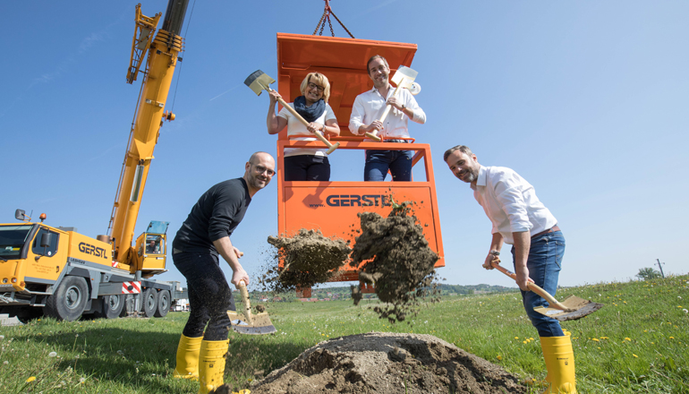 Bis April 2020 entstehen in Grieskirchen bei laufendem Betrieb ein rund 5.500 m² großes, hochmodernes Logistikzentrum für Frisch- und Tiefkühlwaren sowie ein zusätzliche Büroflächen mit ca. 1.000 m² Nutzfläche. Den Startschuss für diese bislang größte Investition in der KRÖSWANG-Historie markierte der offizielle Spatenstich am 2. Mai durch Maria Pachner (Bürgermeisterin Grieskirchen), Gerold Wimmer (Geschäftsführer Gerstl Bau), Oliver Jobst (Projektverantwortlicher bauSERV) und Manfred Kröswang (Geschäftsführer Kröswang).
